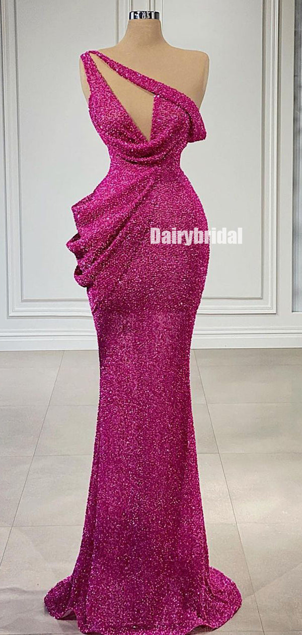 Gorgeous One-Shoulder Sparkle Beaded Sexy Prom Dresses, FC6267