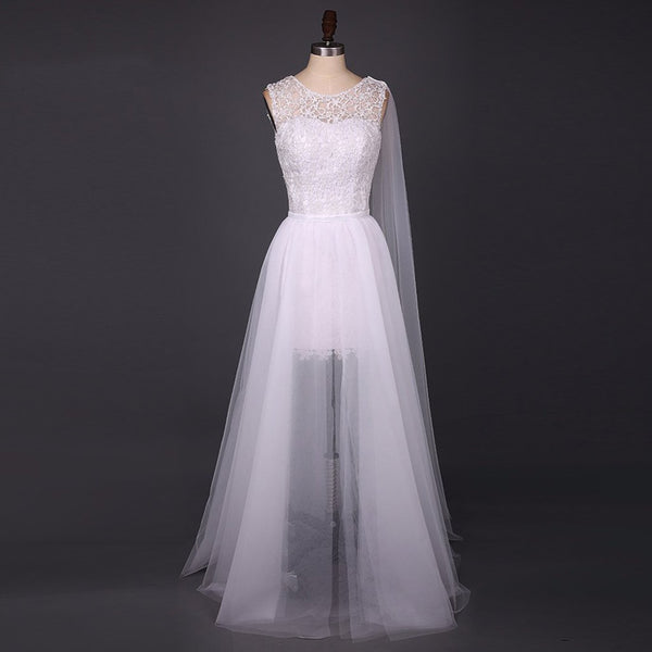 Long Wedding Dress, Tulle Wedding Dress, A-Line Bridal Dress, See Through Wedding Dress, Beach Wedding Dress, Sleeveless Wedding Dress, Lace Wedding Dress, LB0442