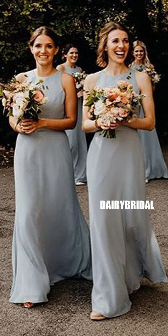 Chiffon A-line Simple Backless Floor-Length Bridesmaid Dress, FC3821