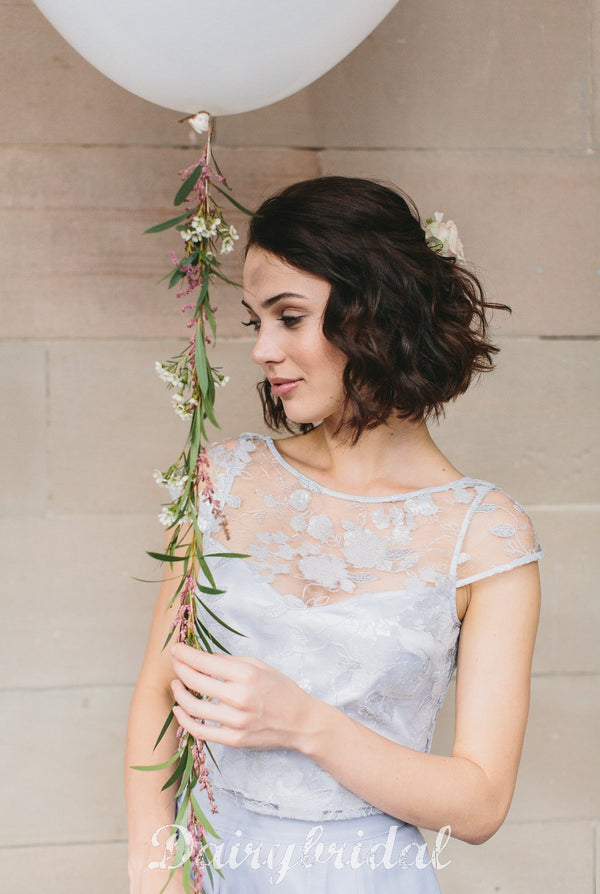 Two Pieces A-line Organza High Low Cap Sleeve Bridesmaid Dress, FC4905