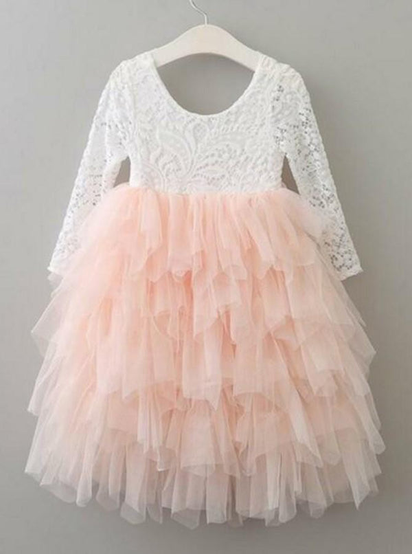 A-Line Lace Top 3/4 Sleeve Tulle Flower Girl Dresses, Tea-Length Lovely Little Girl Dresses, FC2176