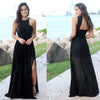 Black Tulle Prom Dress, Slit Open-Back Prom Dress, D263