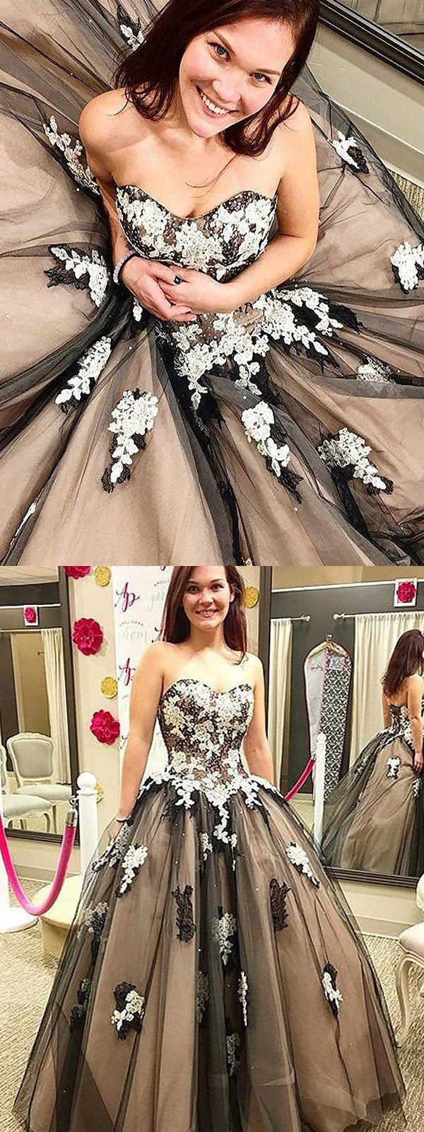Sweetheart Neckline A-Line Tulle Backless Applique Prom Dress, FC306
