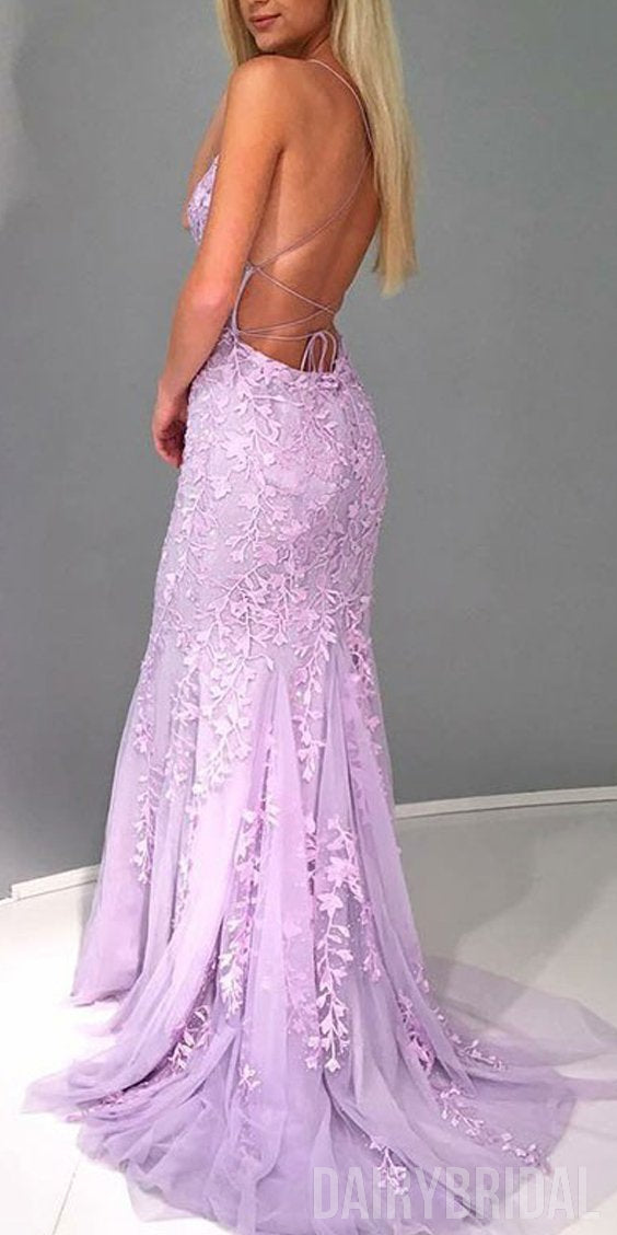 New Arrival Mermaid Tulle Backless Applique Prom Dresses, FC1859