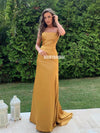 New Arrival Straight Neckline Backless Pleated Elastic Satin Prom Dresses, FC4424