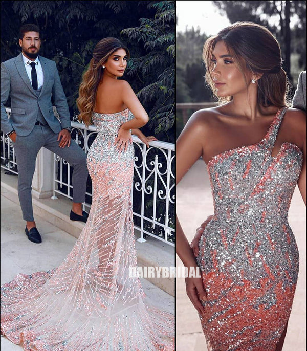 Newest One Shoulder Mermaid Sequin Backless Tulle Prom Dresses, FC4104 Newest One Shoulder Mermaid Sequin Backless Tulle Prom Dresses, FC4104