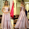 Off the Shoulder Satin A-Line Backless Pink Charming Prom Dresses, D70