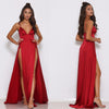 Spaghetti Starps Red Slit Prom Dress, Sexy V-Neck Backless A-Line Soft Satin Prom Dress, D516