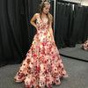 Spaghetti Straps Printed Flowers Chiffon Backless A-Line Prom Dress, FC1255 Spaghetti Straps Printed Flowers Chiffon Backless A-Line Prom Dress, FC1255