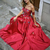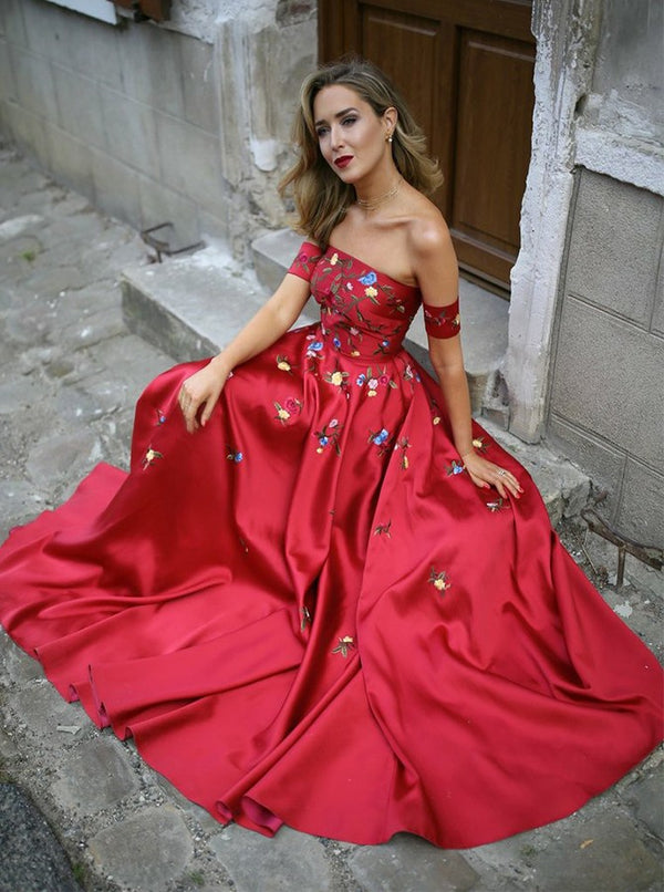 Straight Neckline A-Line Satin Backless Applique Prom Dresses, FC2038