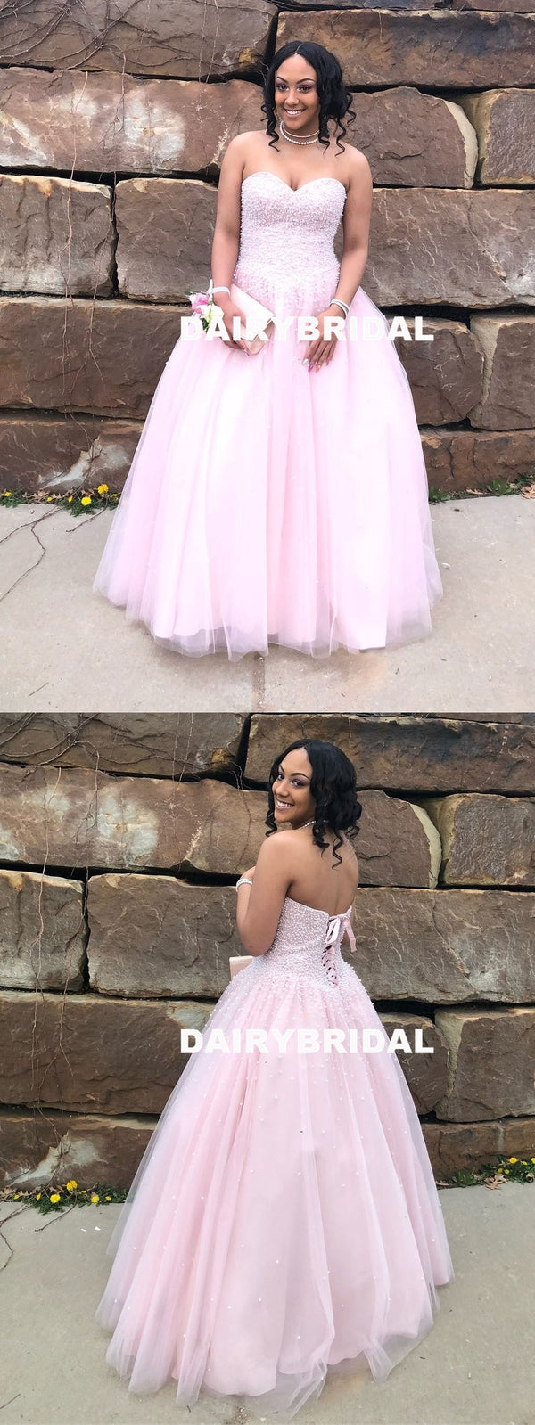 Sweetheart A-Line Beaded Pink Backless Tulle Sleeveless Prom Dresses, D1061 Sweetheart A-Line Beaded Pink Backless Tulle Sleeveless Prom Dresses, D1061