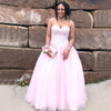 Sweetheart A-Line Beaded Pink Backless Tulle Sleeveless Prom Dresses, D1061