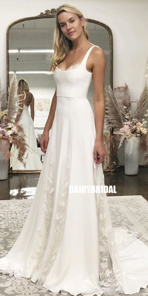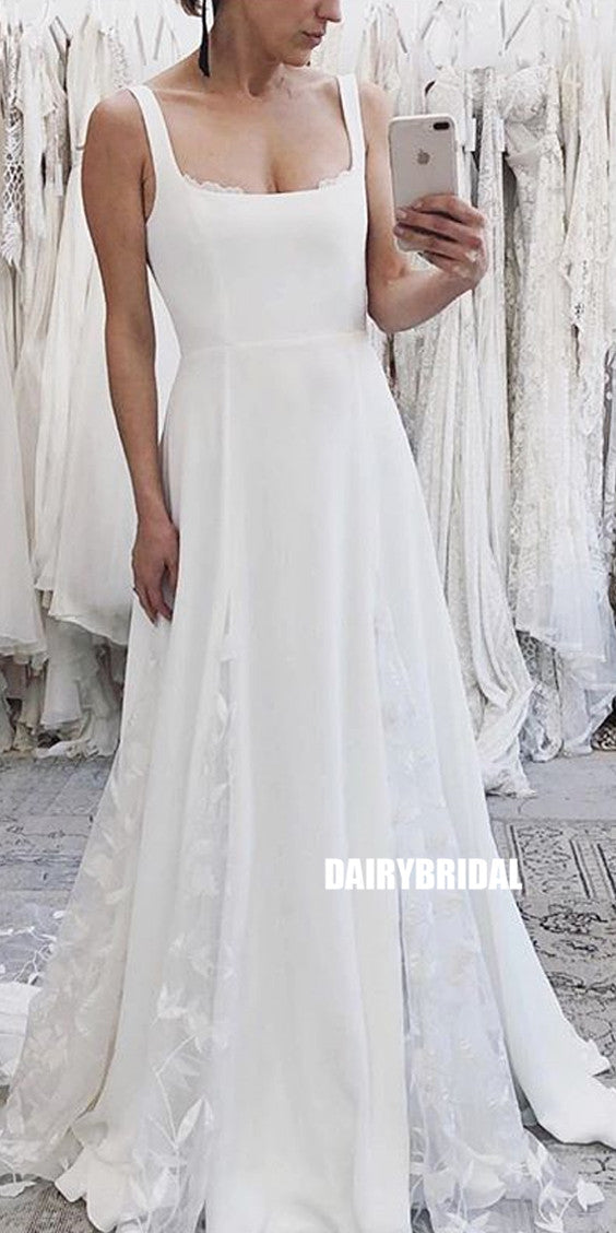 Charming A-line Square Neckline Lace Backless Wedding Dresses, FC2682 Charming A-line Square Neckline Lace Backless Wedding Dresses, FC2682