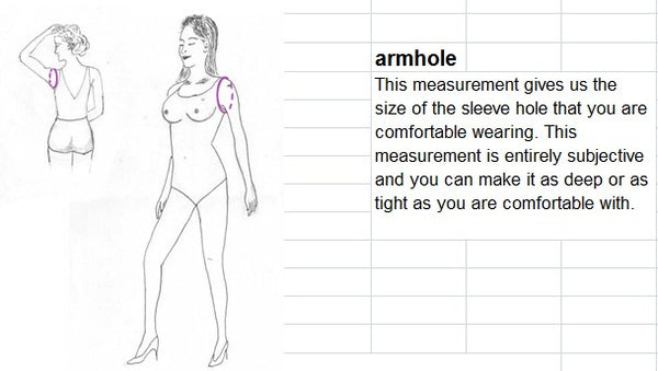 armhole__________cm/inch (end of arm) only used for one shoulder or off shoulder dress.