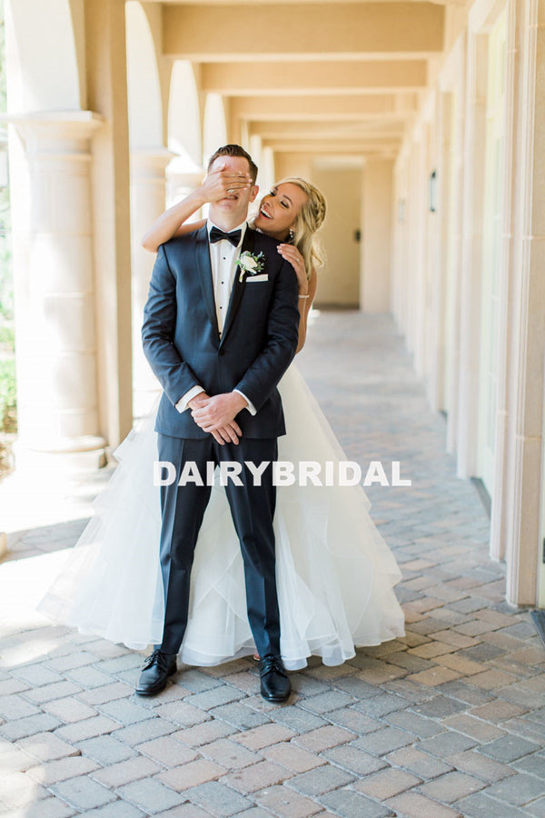 Newest Spaghetti Straps Organza Wedding Dress, Backless A-Line Wedding Dress, D639 Newest Spaghetti Straps Organza Wedding Dress, Backless A-Line Wedding Dress, D639