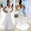 Satin Mermaid V-Neck Wedding Dress, Charming Backless Wedding Dress, D819