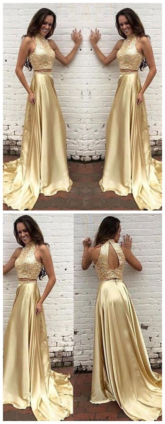 Two Pieces High neck Gold New Arrival Prom Dress, PD0062 Two Pieces High neck Gold New Arrival Prom Dress, PD0062
