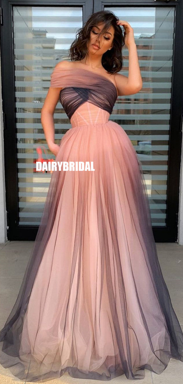 Off Shoulder Tulle A-line Simple Backless Gradient Prom Dresses, FC5387 Off Shoulder Tulle A-line Simple Backless Gradient Prom Dresses, FC5387