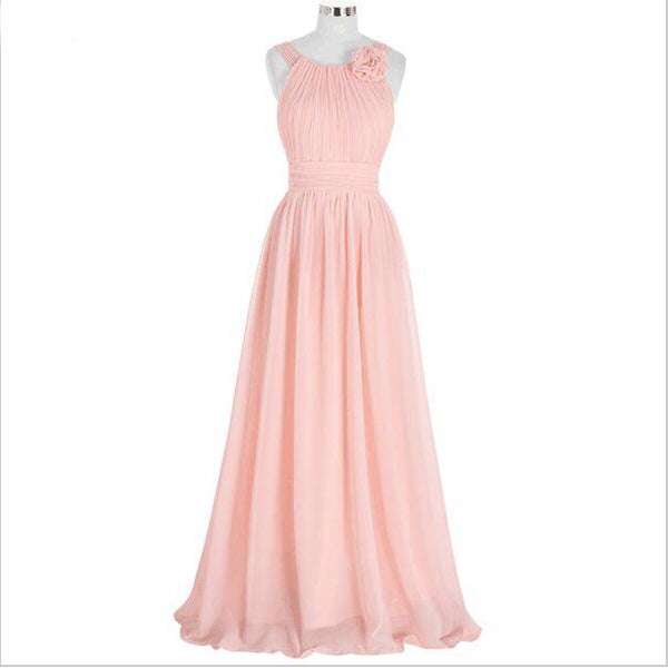 Elegant Pink Bridesmaid Dress,Long Chiffon Beach Bridesmaid Dresses,2017 Wedding Formal Dress,220060