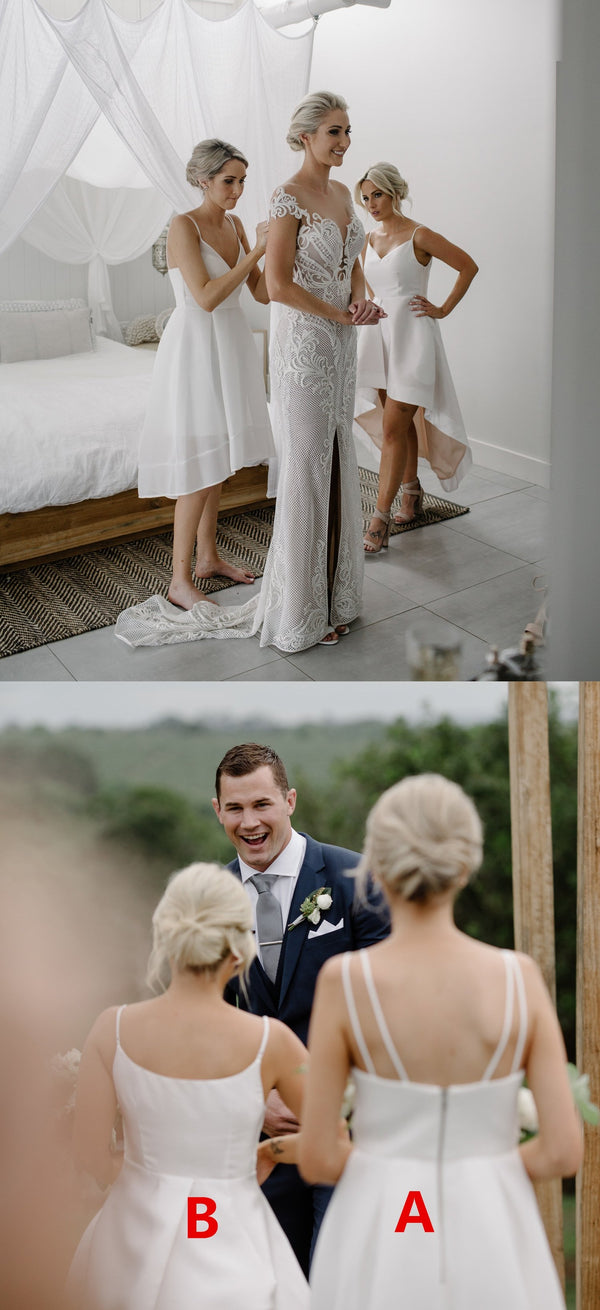 Spagetti Straps High-Low Chiffon Backless Elastic Satin Bridesmaid Dresses, FC1330
