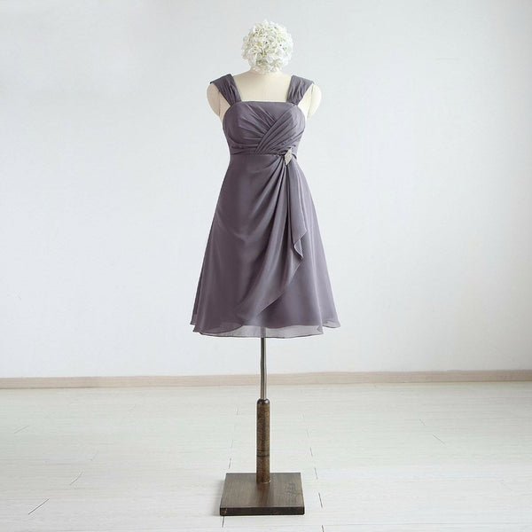 Short Bridesmaid Dress, Chiffon Bridesmaid Dress, Sleeveless Bridesmaid Dress, Grey Bridesmaid dress, Knee-Length Wedding Party Dress, LB0341