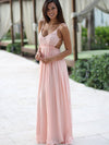 Spaghetti Straps Lace Bridesmaid Dress, Chiffon Pink Bridesmaid Dress, Backless Bridesmaid Dress, D152