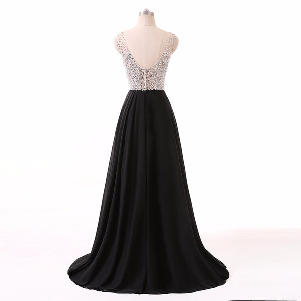 Long Prom Dresses, Chiffon Prom Dresses, A-Line Party Prom Dresses, Sleeveless Evening Dresses, V-Neck Prom Dresses, Beading Prom Dresses Online, LB0342