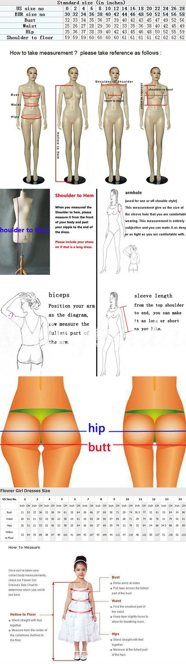 butt:_______cm/inch (under hip, only need for mermaid dress)