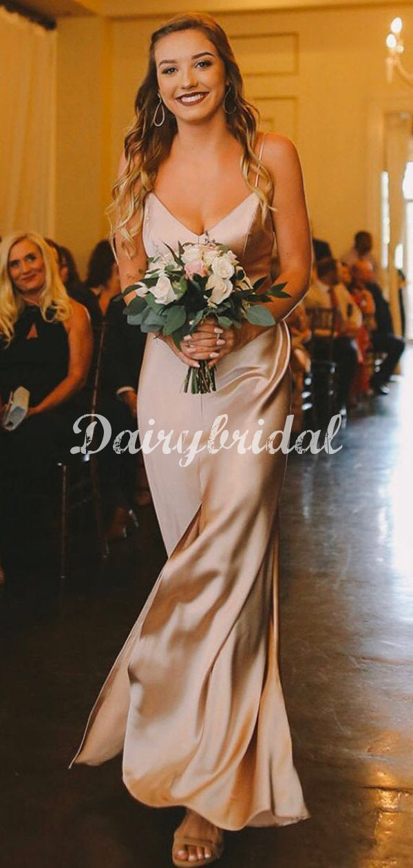 Fashion Mermaid Spaghetti Straps Sexy Slit Long Bridesmaid Dress, FC5132