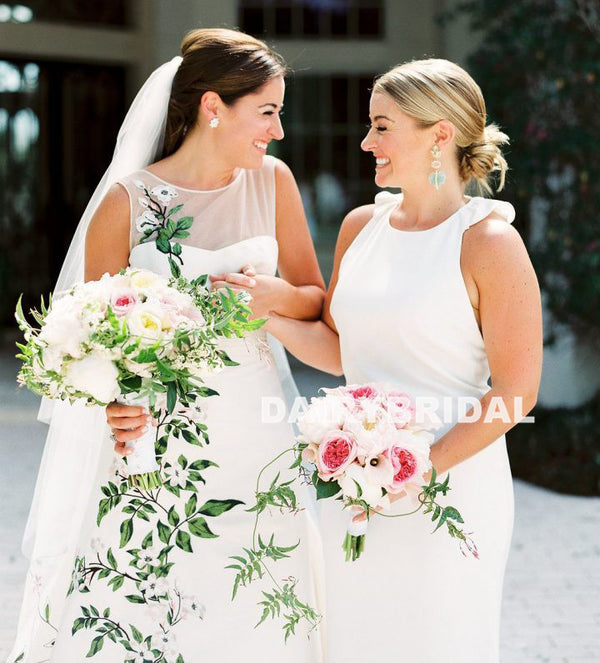 New Arrival White Mermaid Bridesmaid Dress, Unique Chiffon Bridesmaid Dress, D1029