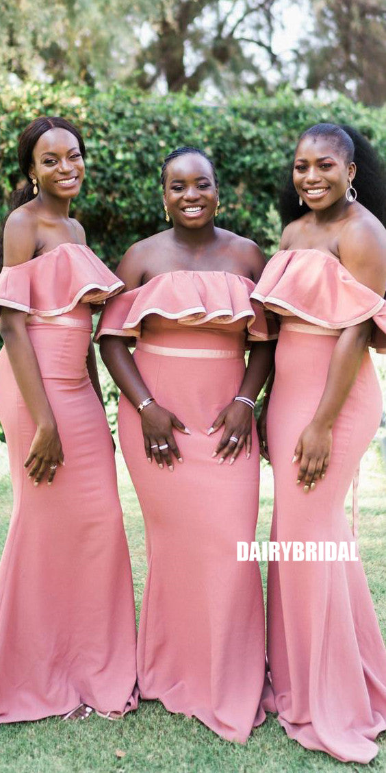 Off Shoulder Mermaid Backless Floor-Length Inexpensive Bridesmaid Dress, FC2674
