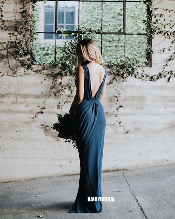 Sexy Deep V-neck Mermaid Jersey Backless Slit Pleated Bridesmaid Dress, FC2533
