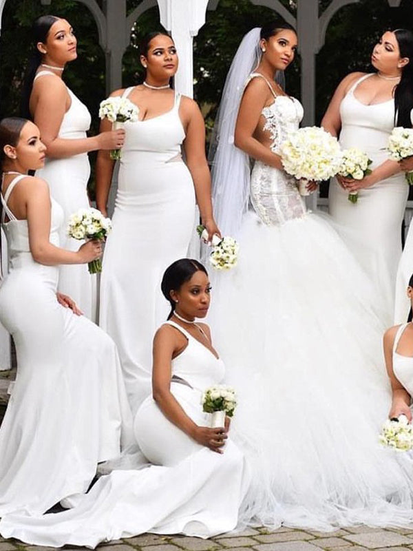 Sexy Mermaid Cross Back V-neck Floor-length Bridesmaid Dress, FC2610