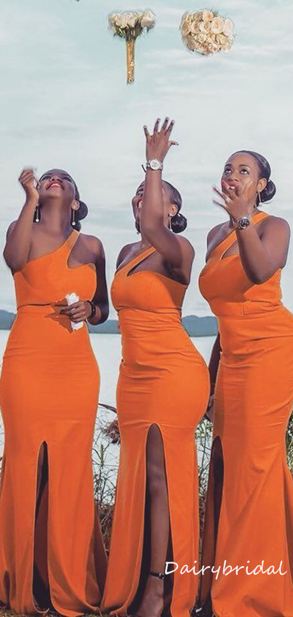 Stunning Mermaid One-shoulder Sexy Slit Bridesmaid Dress, FC6181
