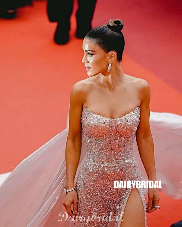 Gorgeous Mermaid Sequin Sexy Slit Backless Sparkle Prom Dresses, FC4446