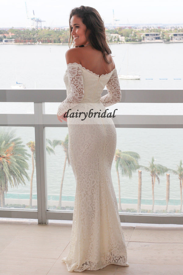Off the Shoulder Lace Prom Dress, Charming Mermaid Long Sleeve Prom Dress, D341, D205