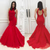 Red Mermaid Bead Prom Dresses, Sexy Open-Back Tulle Prom Dresses, D616