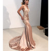 Sexy Mermaid Applique V-Neck Prom Dress, Spaghetti Straps Satin Prom Dress, D539
