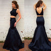 Two Pieces Satin Prom Dress, Beaded V-Back Sleeveless Mermaid Prom Dress, D812