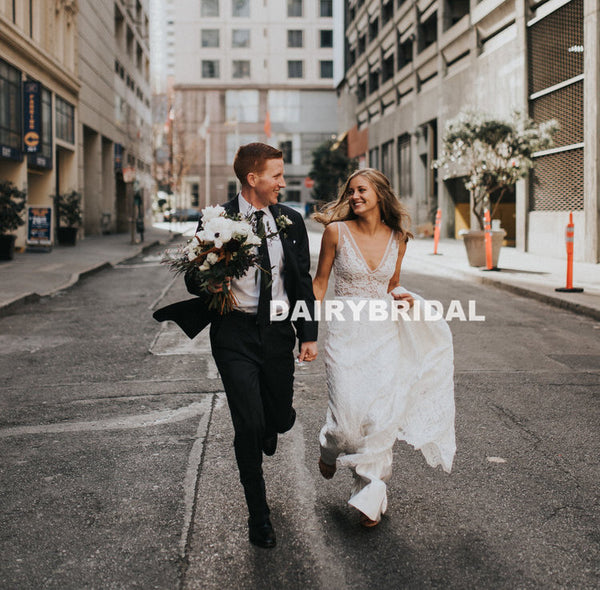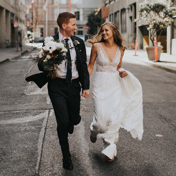 Charming Lace Mermaid Wedding Dress, Sexy V-Back Sleeveless Wedding Dr