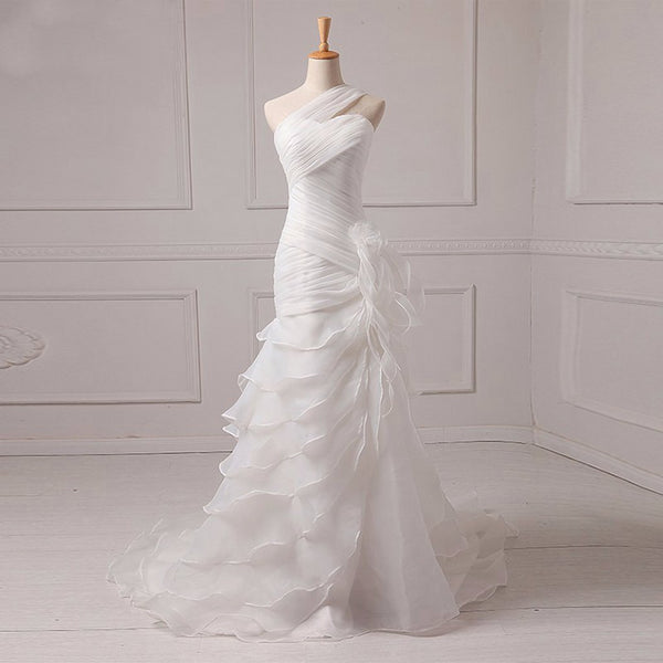 Long Wedding Dress, Organza Wedding Dress, Mermaid Bridal Dress, One-Shoulder Wedding Dress, Pleat Wedding Dress, Wedding Dress with Court Train, LB0410