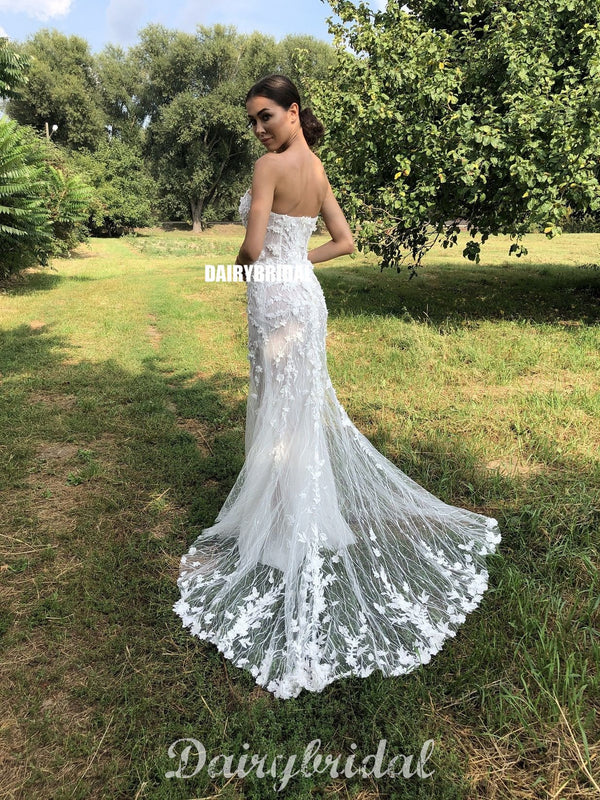 New Arrival Sweetheart Mermaid Lace Backless Wedding Dresses, FC4816