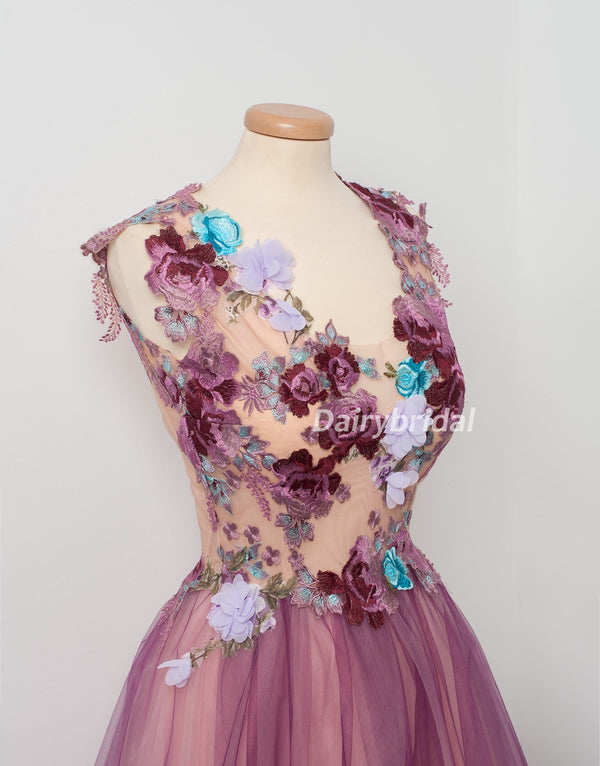 Charming Applique A-Line Prom Dress, Honeast Tulle Prom Dress, D474
