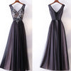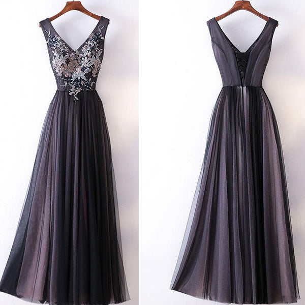 Long Prom Dress, V-Neck Prom Dress, Tulle Prom Dress, A-Line Prom Dress, Applique Prom Dress, Sleeveless Prom Dress, Party Dresses, Evening Dresses, LB0713