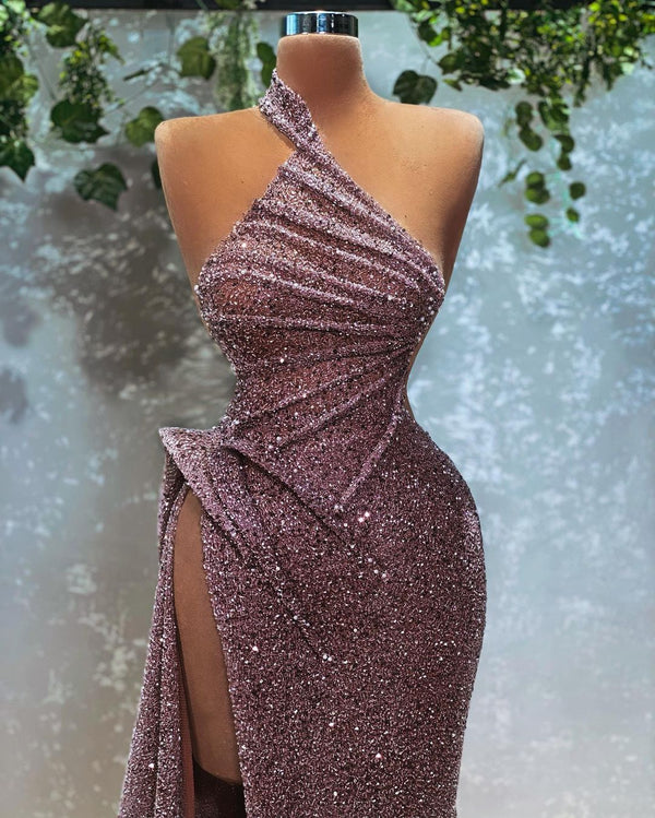 Charming Sequin Mermaid High Slit Sparkle Prom Dresses, FC6246