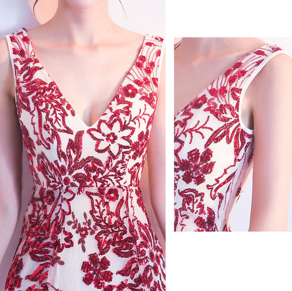 Long Prom Dress, Sequin Prom Dress, Sexy Backless Prom Dress, Tulle Prom Dress, V-Neck Prom Dress, Floor-Length Party Dresses, Sleeveless Prom Dress, LB0797