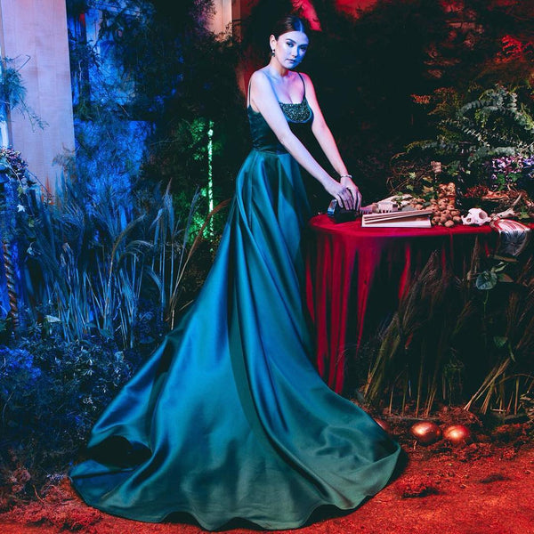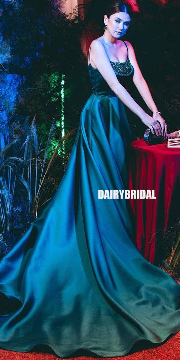 Spaghetti Straps A-Line Satin Backless Sequin Prom Dress, FC3778 Spaghetti Straps A-Line Satin Backless Sequin Prom Dress, FC3778