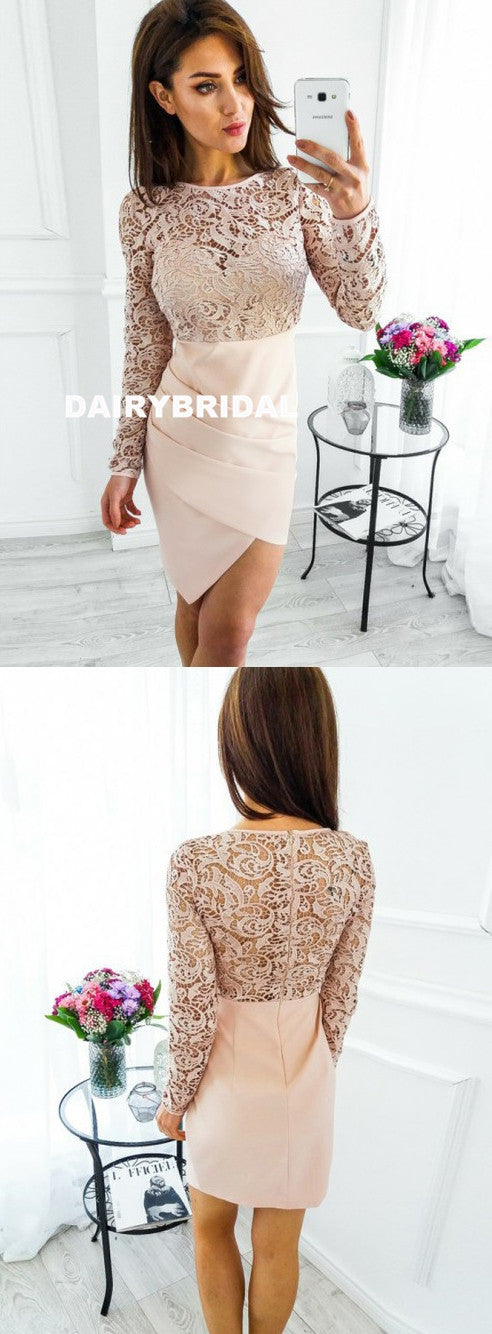 Long Sleeve Lace Top Homecoming Dress, Sheath Knee-Length Homecoming Dress, D1392