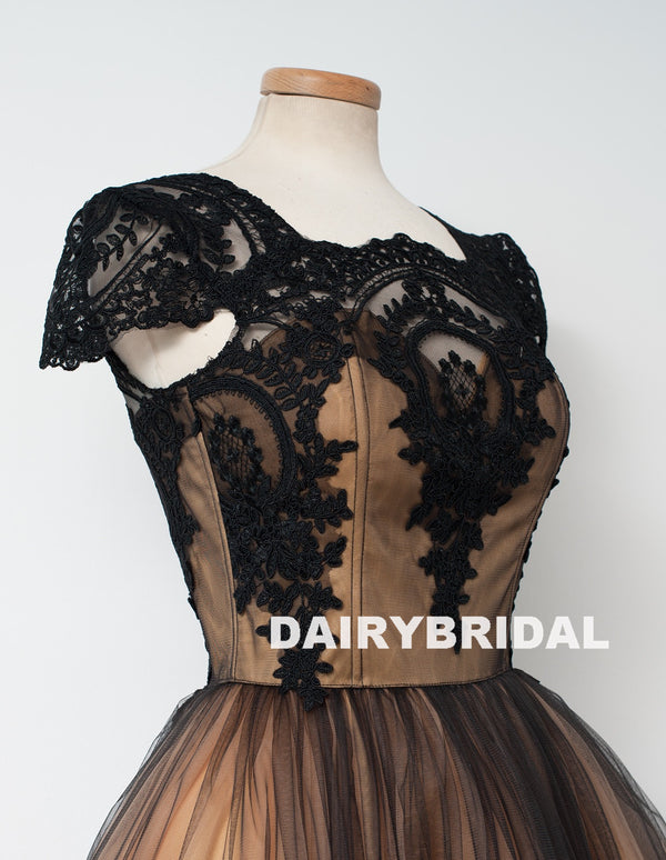 Newest Cap Sleeve Black Lace Homecoming Dress, Tulle A-Line Backless Homecoming Dress, D1319 Newest Cap Sleeve Black Lace Homecoming Dress, Tulle A-Line Backless Homecoming Dress, D1319