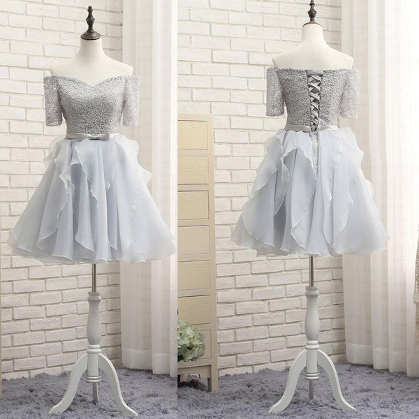 Short Homecoming Dress, Tulle Homecoming Dress, Lace Homecoming Dress, Off Shoulder Junior School Dress, Knee-Length Graduation Dress, Short Sleeve Homecoming Dress, LB0667 Short Homecoming Dress, Tulle Homecoming Dress, Lace Homecoming Dress, Off Shoulder Junior School Dress, Knee-Length Graduation Dress, Short Sleeve Homecoming Dress, LB0667